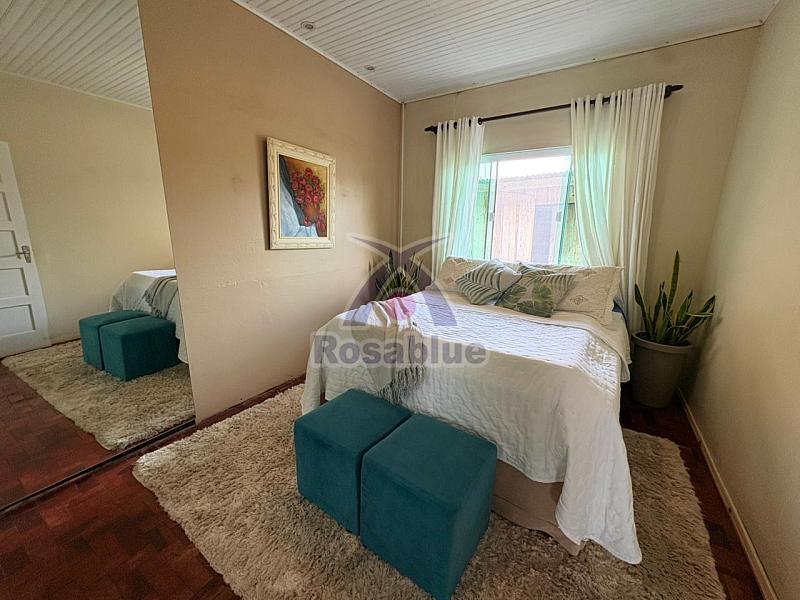 Essa casa em alvenarua possui 3 dormitórios, sendo 1 com closet, 1 banheiro, sala de estar conjugada com sala de jantar, cozinha com móvel, área de serviços, garagem ampla com churrasqueira e jardim.